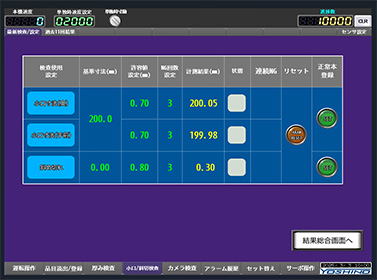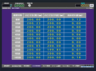 ③小口寸法検査 – 透過型レーザーセンサにより、天/地側の長さを計測